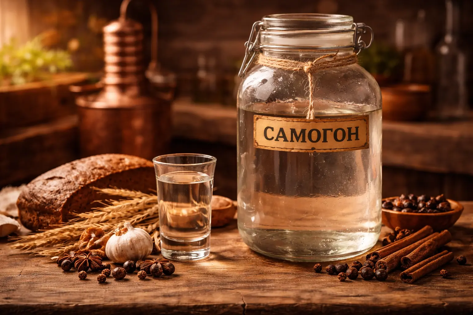 Важный нюанс: одинарная перегонка зернового самогона даёт плотный, иногда слишком "зерновой" фон — он может перебить аромат ягоды. Двойная перегонка убирает грубые ноты, оставляя только лёгкий характерный штрих. Именно этот штрих и нужен в хреновухе или перцовке — он добавляет глубину, которую водка дать не может.
